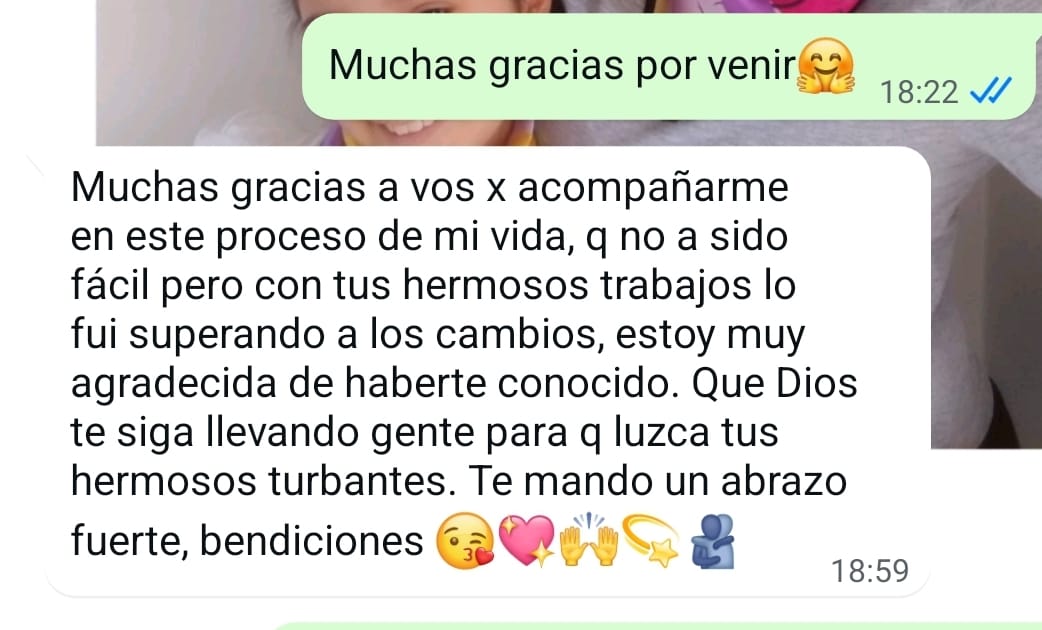 Cuando comienzo a confeccionar un turbante, sea un modelo nuevo, o no, siempre pienso en cuál será la clienta que lo elija. Si le servirá, si le ayudará con el proceso que tiene que transitar.